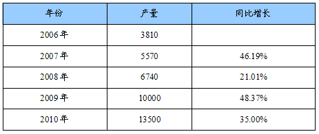 2006-2010年中国氨基葡萄糖原料药产量统计