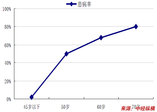 临床数据显示,45 岁以下人群骨关节炎患病率仅为2%,而60 岁以上人群患病率高达68%。随着年龄增长,都患有不同程度的骨关节炎。而类风湿性关节炎任何年龄均可发病,多发于30~60 岁,总体上随年龄增长,发病率也增高;女性发病率明显高于男性。