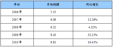 2006-2010年中国氨基葡萄糖临床药物销售额