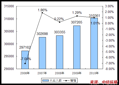 2006-2010年航空航天器制造 行业 从业人员数量状况