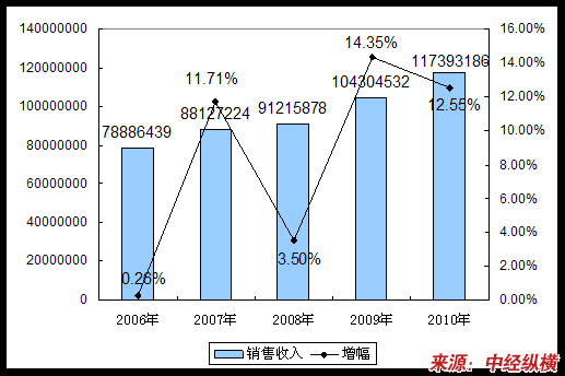 2006-2010年航空航天器制造 行业 销售收入 分析