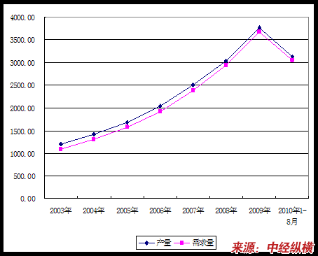 2003-2010年国内白云矿供需平衡