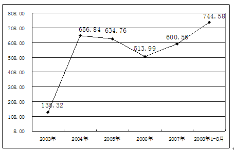 第一节 2003-2008年1-8月中国钨钼矿采选 行业 资本保值增值率最好水平