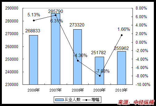 一、2006-2010年中国缝纫线 行业 企业从业人员 分析