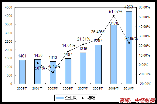 2003-2010年粘土砖瓦及建筑砌块制造 行业 企业数量发展状况