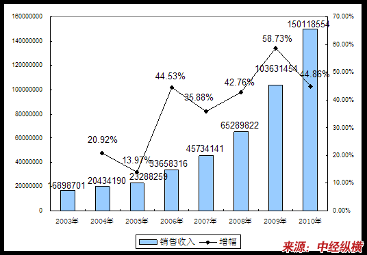 2003-2010年粘土砖瓦及建筑砌块制造 行业 销售收入发展状况
