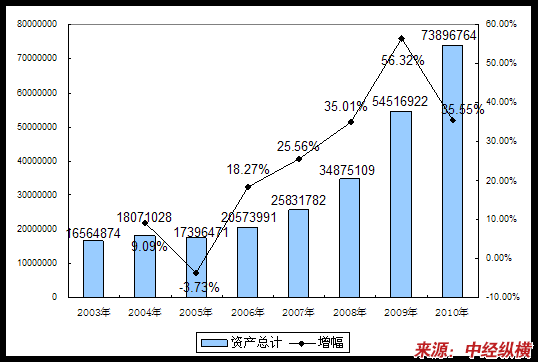 2003-2010年粘土砖瓦及建筑砌块制造 行业 资产总计发展状况