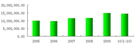 2005-2010年中国煤油产量趋势图