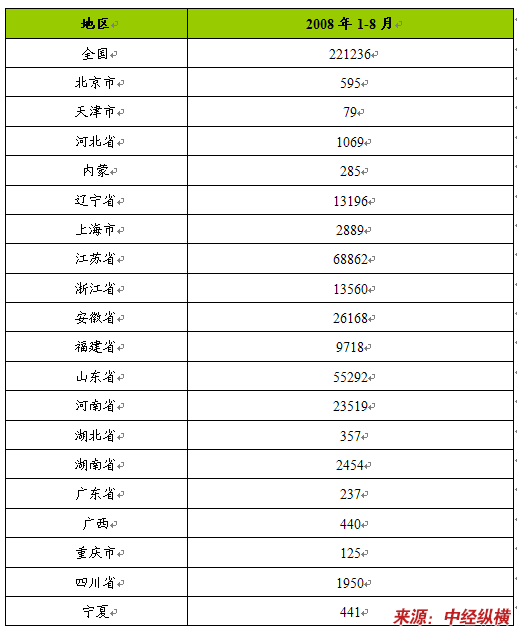 第二节 2008年1-8月 行业 利润总额地区分布状况