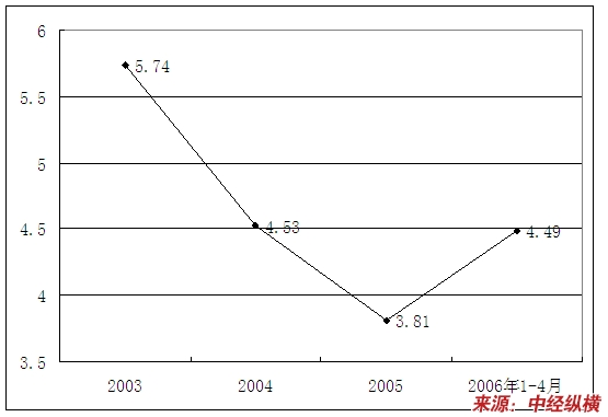 | 2006年1-4月 | 4.49 | 5.34 | 4.34 | 4.48 |