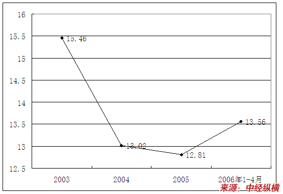 | 2006年1-4月 | 13.56 | 16.86 | 12.96 | 13.53 |