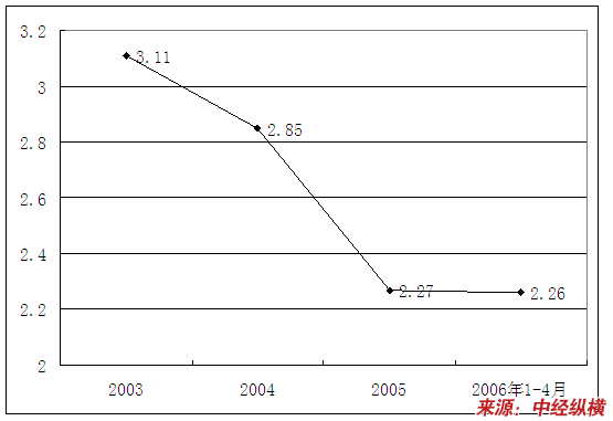 | 2006年1-4月 | 2.92 | 2.87 | 3.02 | 2.96 |