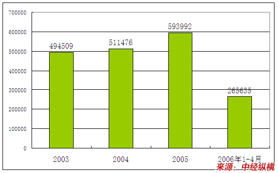 | 2006年1-4月 | 265635 | 148562 | 48519 | 68554 |