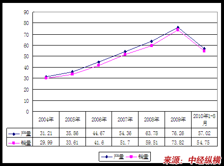 2004-2010年8月高低压成套开关柜体产量统计表