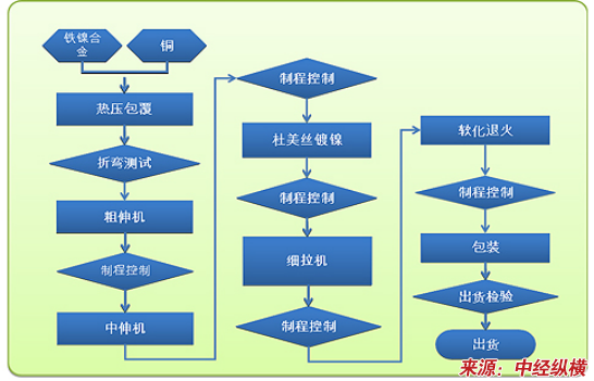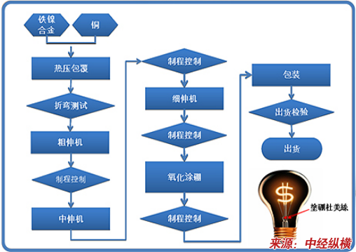 镀镍杜美丝生产工艺流程图