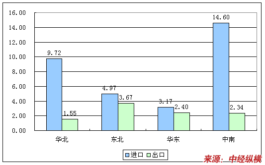 2010年1-11月儿童立体书业产品地区进出口单价比较