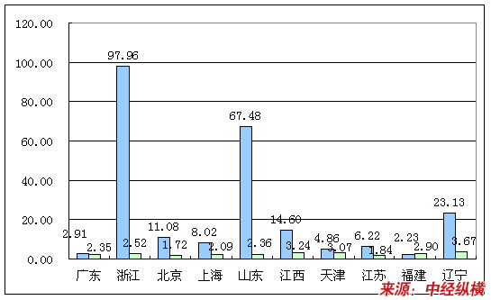 2010年1-11月儿童立体书业产品内地省市进出口单价比较