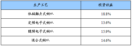 第四节 不同汽车电子喇叭产品 技术工艺 生产线投资收益性比较