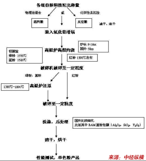 稀土三基色荧光粉工艺流程图