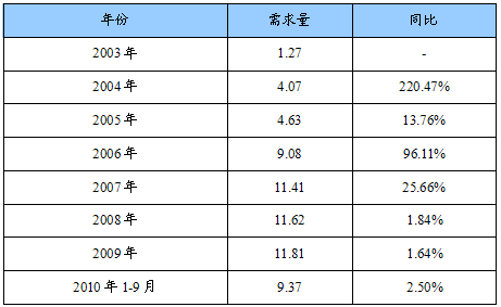2003-2010年9月中国液晶显示器金属件需求量及同比增长