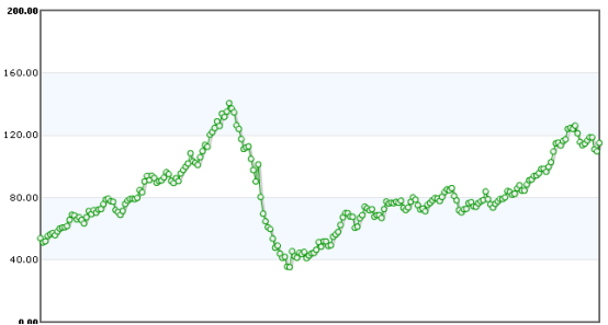 2007年1月-2011年国际市场现货(原油)价格走势