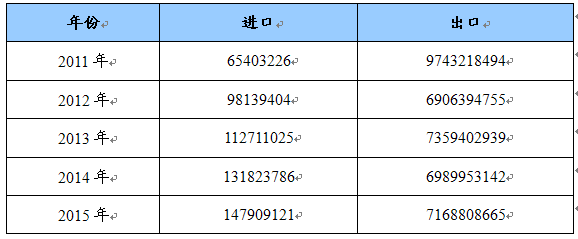 2011-2015年石英矿进出口预测 单位:千克