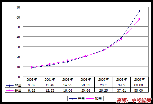 2009年,我国光纤市场需求量突破7000万公里,国内的实际产量达到6300万公里左右,需求量和产量都是2001年的7~8倍,产业发展可以说是爆炸性的。近5年,光纤光缆市场需求年平均增速都在30%以上。