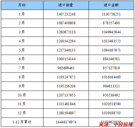 2011年中国纸浆进口分月统计
