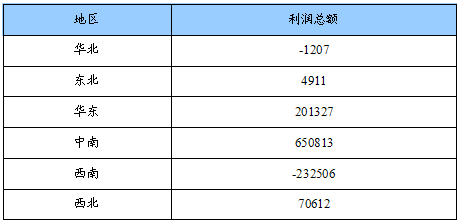 利润总额地区分布状况