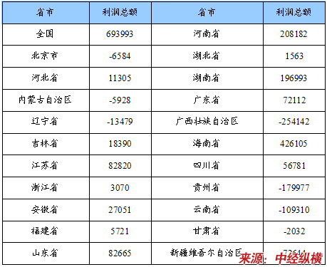 利润总额省市分布状况