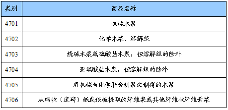 纸浆进出口商品编号及名称