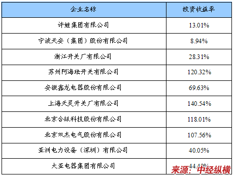 环网柜企业投资收益