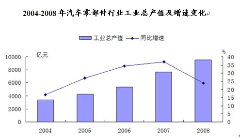 近5年,汽车零部件发展速度都非常快, 行业 工业总产值增速都保持在16%以上,平均增速达28.8%。2008年零部件产值占整车的比例从07年的72%上升到82.6%。但是受累于汽车 行业 的低迷,我国汽车零部件 行业 虽然仍然表现出了强劲的增长势头,但是增幅与07年36.76%的增幅相比仍有较大回落。