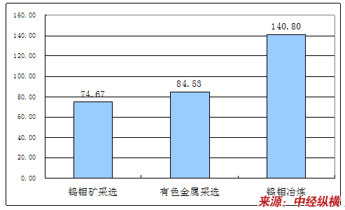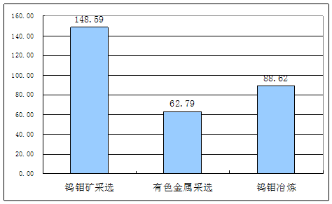 2008年1-11月钨钼矿采选及相关产业投资收益率系数比较