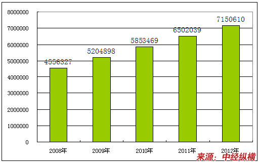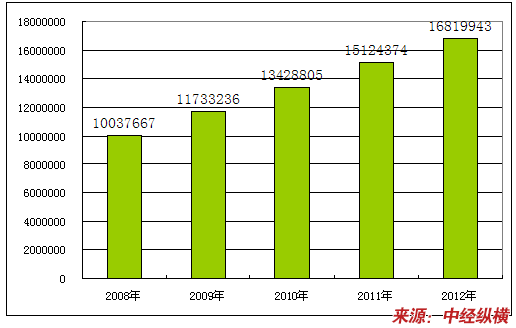 二、2008-2012年绳、索、缆制造 行业 工业总产值预测