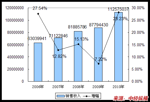 第一节 2006-2010年中国缝纫线 行业 销售收入 分析