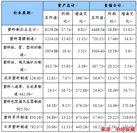 8月底,塑料制品业资产总额8159.29亿元,同比增长17.7%;负债总额4468.54亿元,同比增长16.9%,增速分别比去年同期加快9.8和13个百分点。在各子 行业 中,塑料人造革、合成革制造业资产和负债增长较快,同比分别达到24.1%和24.6%。