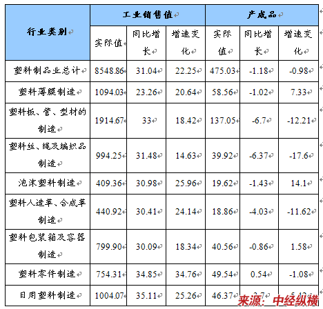 1-8月塑料制品业工业销售产值8548.86亿元,同比增长31%。除塑料薄膜制造业外,其他子 行业 的增速均超过30%,其中,日用塑料制造业和塑料零件制造业增速达到35%。