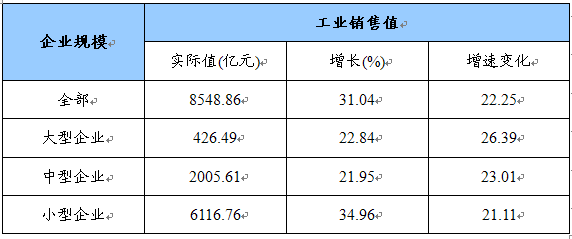 塑料制品 行业 内小型企业销售状况较好,工业销售值的增长速度超过大、中型企业。1-8月,小型企业实现工业销售值达到6116.76亿元,同比增长35%。由于数量众多,小型企业工业销售值的绝对量远远超过大中型企业,占塑料制品 行业 总额的71.6%。