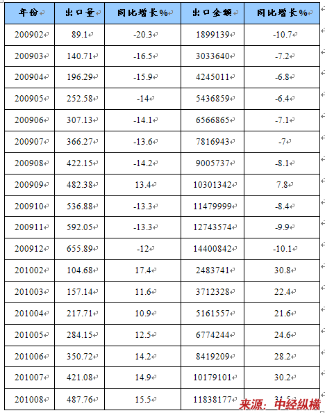 2010年1-8月,塑料制品出口量同比增长15.5%,达到487.76万吨,出口额同比增长31.5%。