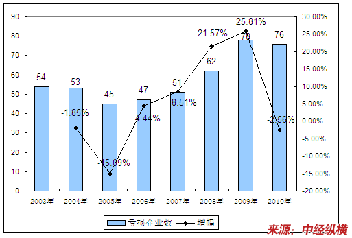 2003-2010年可拆板壳式换热器所属 行业 企业数量发展状况