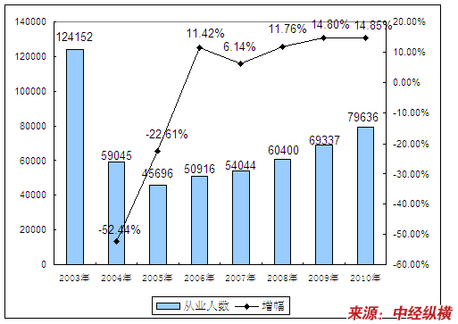 2003-2010年可拆板壳式换热器所属 行业 企业从业人员发展状况