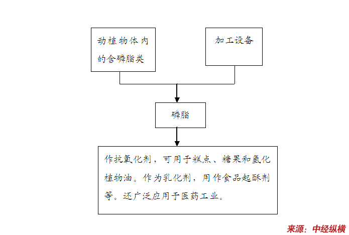 磷脂是一种广泛存在于动植物体内的含磷脂类,系三甘酯中一个脂酸根被磷酸所取代后形成的卵磷脂。在植物中以大豆含磷脂最高(约含1.6%~2.0%),其次,棉子、油菜籽、葵花子、玉米胚芽等也含一定量的磷脂。动物类食品中以蛋黄含磷脂数量最高(约8%~10%)。由于大豆为世界大宗农产品之一,来源易得,故目前国际市场上的卵磷脂主要从大豆油脚等副产品中提取所得(注:在大豆油精炼后剩下的油脚中卵磷脂含量高达3%以上)。