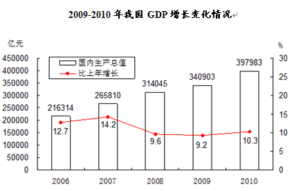 2009年我国面对国际金融危机,采取了适宜的宏观经济政策,刺激经济取得了成效,“保八”目标实现。同时,在国内货币供应过多压力下,地方债务系统性风险显现,银行资产质量面临较大挑战,通货膨胀预期上升,产能过剩情况突出,加上国际经济发展的不确定性依然存在,主权债务危机等问题的出现,使2010年我国经济成为最复杂的一年。