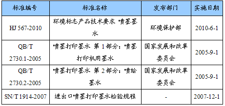 喷墨打印机墨水相关标准
