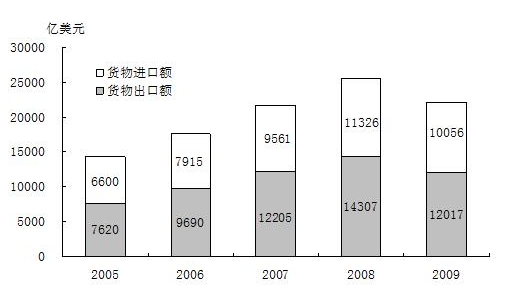 2009年货物进出口总额及其增长速度 单位:亿美元
