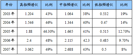 最近几年我国频谱仪市场的国内需求量和供给量,以及进、出口量都保持上升的趋势。(详细数据见第六章第二节)国内市场的需求量主要靠国内供给,但每年频谱仪的进口额要大于出口额,而且这个差额呈现上升的趋势。