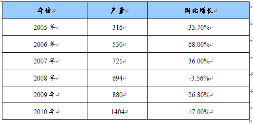 2005-2010年中国不锈钢产量增长情况 单位:万吨