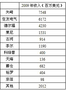 2009年全球汽车线束厂家收入排名
