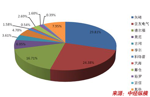 全球汽车线束厂家高度垄断,前四大厂家占据了超过75%的市场,除德尔福外都是日本厂家。